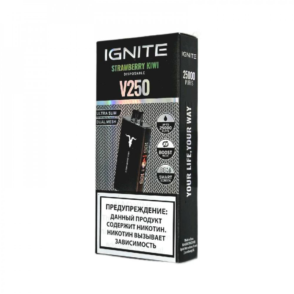 Электронная сигарета Ignite V250 Black 25000 - Strawberry Kiwi (Клубника киви) - купить в Киришах